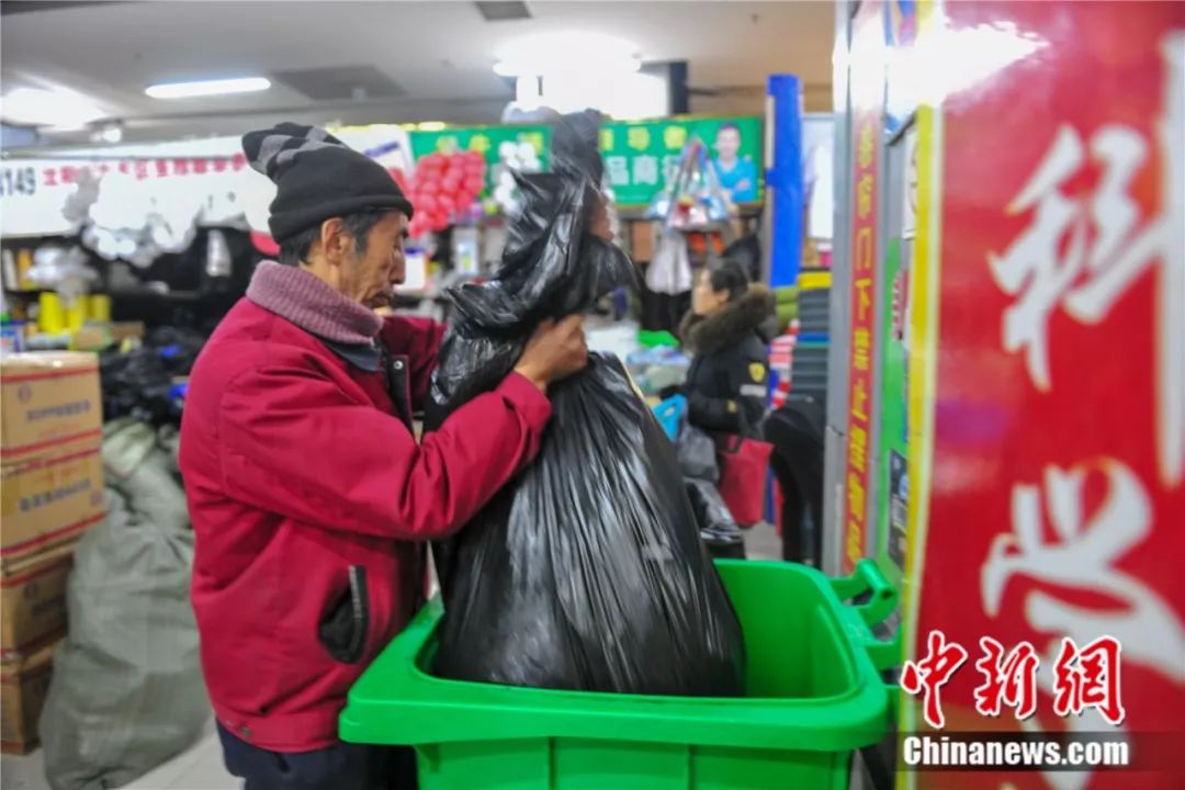 在沈陽街頭有這樣一位大爺,他身材矮小,一張黃瘦的臉上印著深深的皺紋,他時(shí)常穿一件半舊的工作服,清理著垃圾箱里的垃圾。